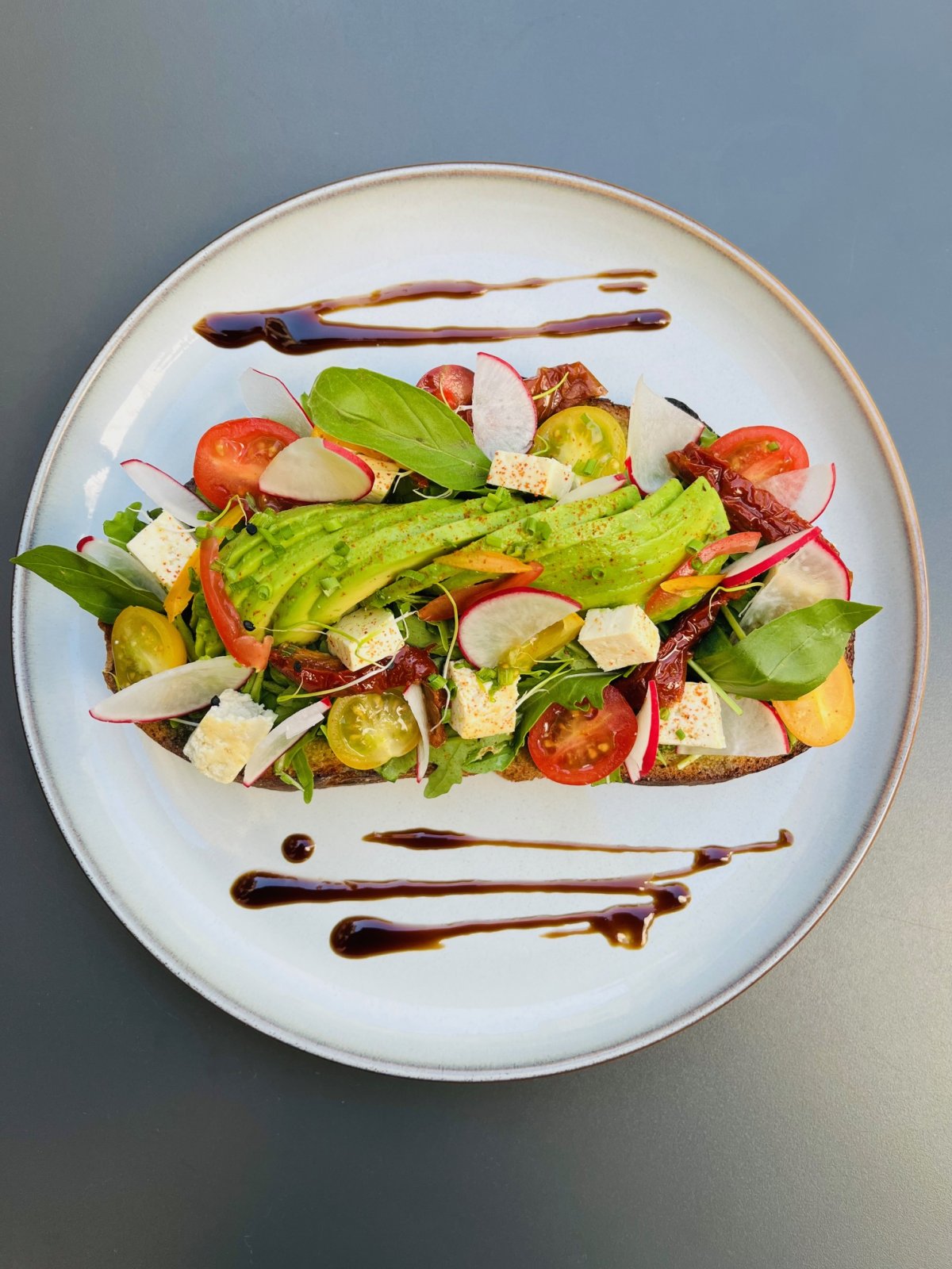 Pain artisanal, avocat, tofu, tomate, tomates cerise, roquette : CHF 19.00
